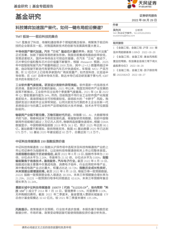 【天风证券】【20220829】基金专题报告:科技博弈加速国产替代,如何一键布局前沿赛道?-24页 行业研究