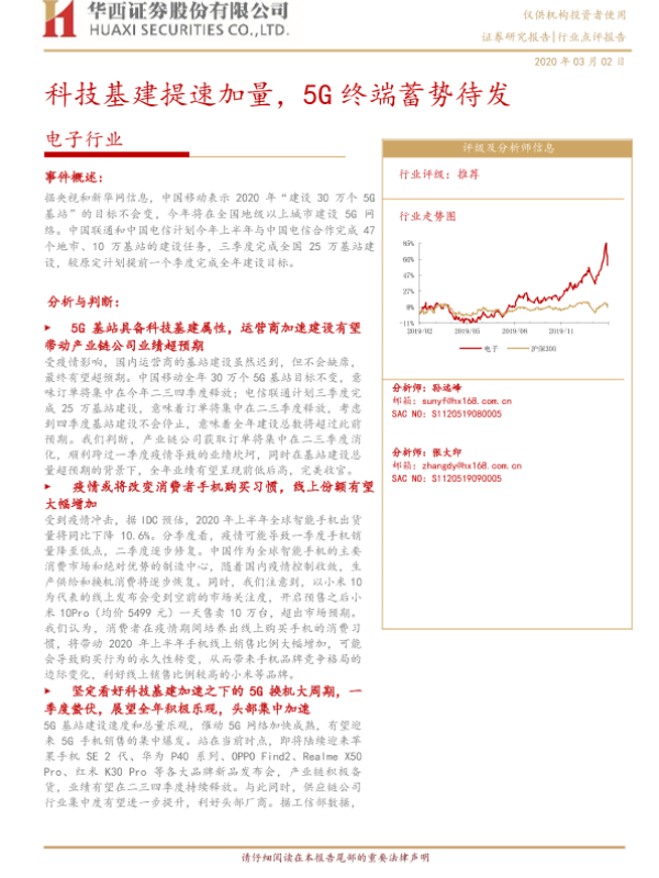 【华西证券】【20200302】电子行业:科技基建提速加量,5G终端蓄势待发-4页 行业研究