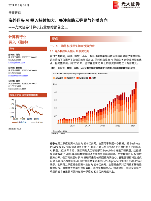 【光大证券】【20240816】计算机行业跟踪报告之三:海外巨头AI投入持续加大,关注车路云等景气外溢方向-19页 行业研究