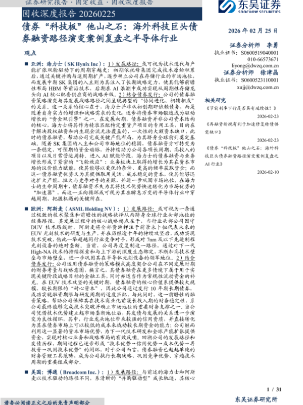 【东吴证券】【202602】债券“科技板”他山之石:海外科技巨头债券融资路径演变案例复盘之半导体行业-31页 证券期货研究报告
