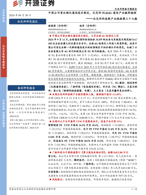 【开源证券】【20241013】中国公司首次领头通信技术制定,北交所5G&6G通信产业链再梳理-16页 行业研究