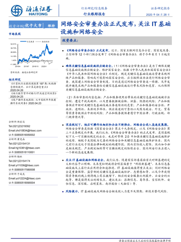 【海通证券】【20200428】信息服务行业跟踪报告:网络安全审查办法正式发布,关注IT基础设施和网络安全-2页 行业研究