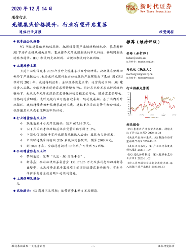 【新时代证券】【20201214】通信行业周报:光缆集采价格提升,行业有望开启复苏-17页 行业研究