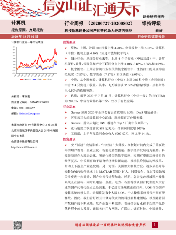 【山西证券】【20200802】20200802-山西证券-计算机行业周报:科技新基建叠加国产化替代助力经济内循环-9页 行业研究