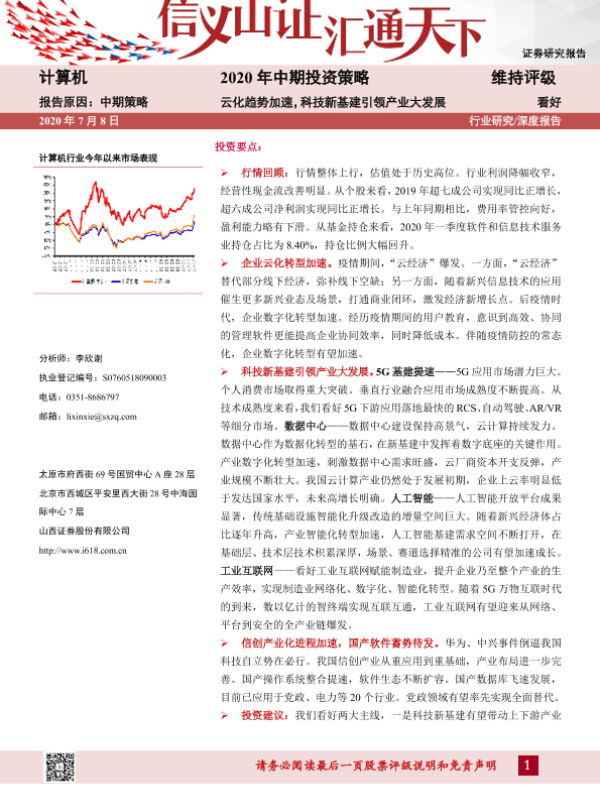 【山西证券】【20200708】计算机2020年中期投资策略:云化趋势加速,科技新基建引领产业大发展-44页 行业研究