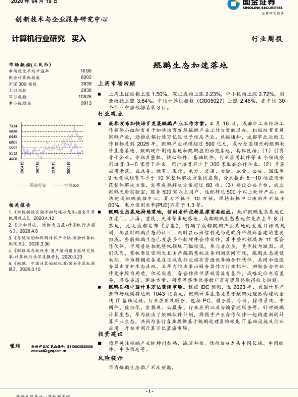 【国金证券】【20200419】20200419-国金证券-计算机行业研究:鲲鹏生态加速落地-7页 行业研究
