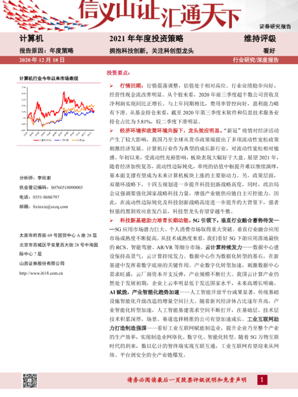 【山西证券】【20201218】计算机2021年年度投资策略:拥抱科技创新,关注科创型龙头-49页 行业研究