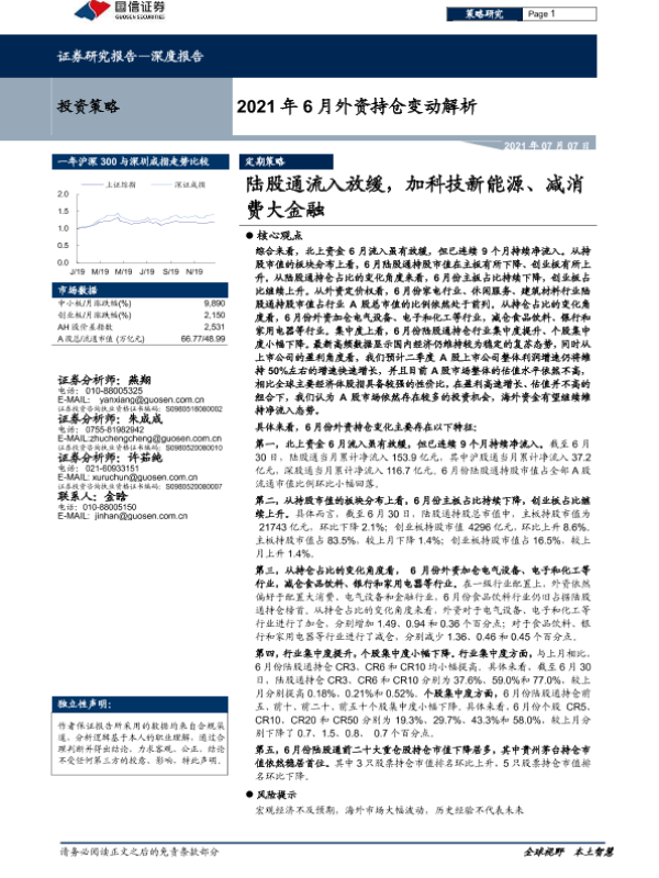 【国信证券】【20210707】2021年6月外资持仓变动解析:陆股通流入放缓,加科技新能源、减消费大金融-21页 行业研究