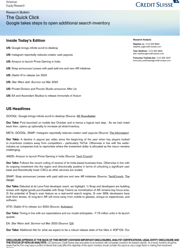 【Credit Suisse】【20221209】The Quick Click-5页 行业研究
