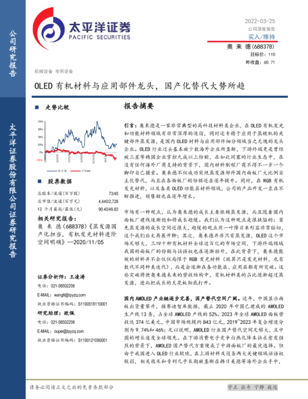 【太平洋证券】【20220325】OLED有机材料与应用部件龙头,国产化替代大势所趋-51页 行业研究