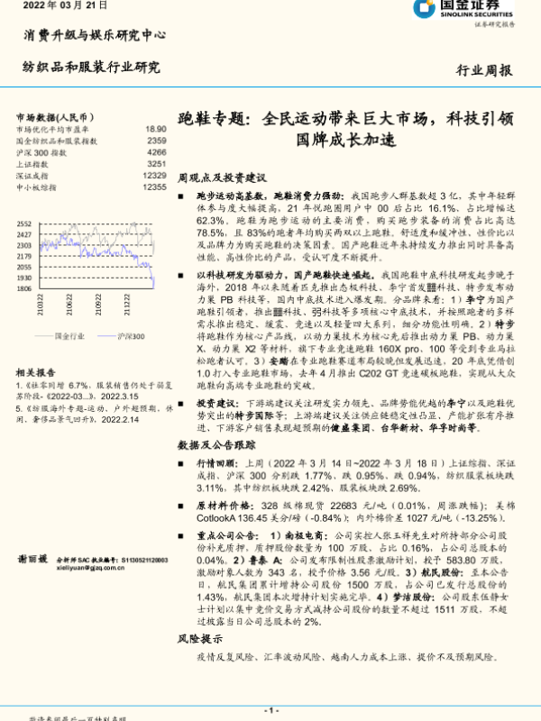 【国金证券】【20220321】纺织品和服装行业跑鞋专题:全民运动带来巨大市场,科技引领国牌成长加速-19页 行业研究