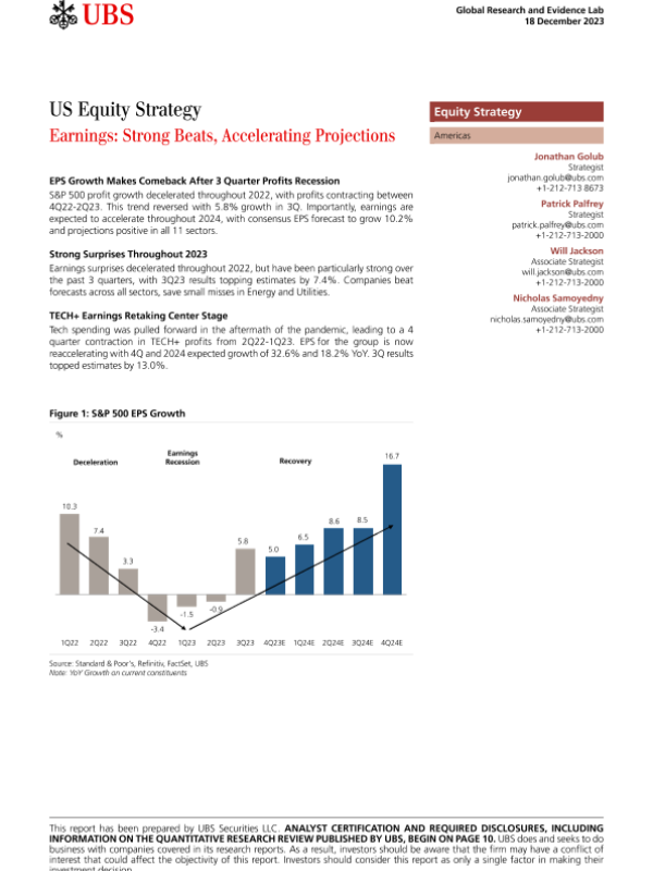 【UBS Securities LLC】【20231218】US Equity Strategy _Earnings Strong Beats, Accelerating Projections-13页 行业研究