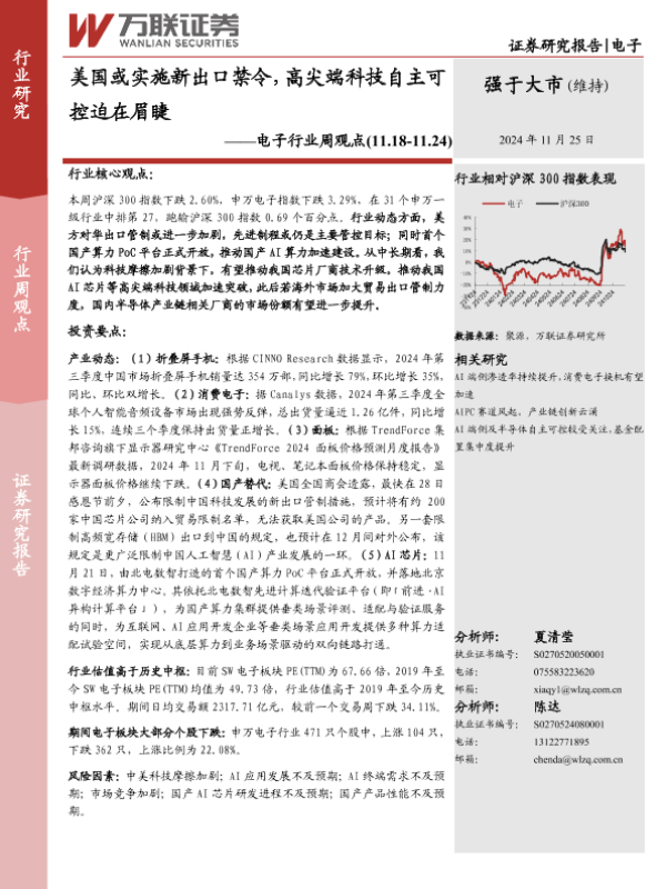 【万联证券】【20241125】美国或实施新出口禁令,高尖端科技自主可控迫在眉睫-13页 行业研究