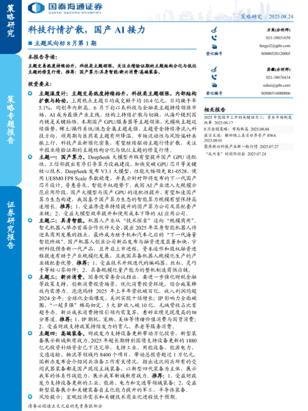 【国泰海通证券】【202508】科技行情扩散,国产AI接力-13页 证券期货研究报告