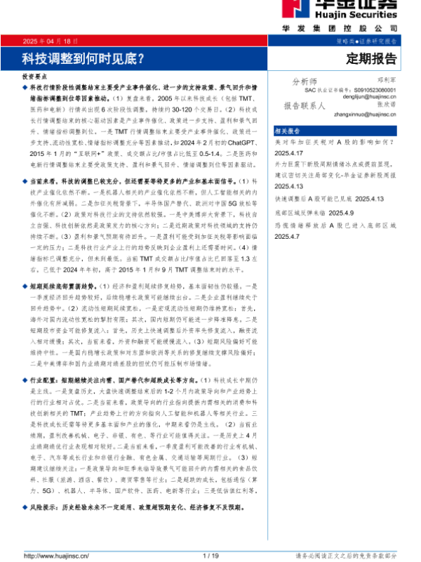 【华金证券】【20250418】科技调整到何时见底?-19页 证券期货研究报告