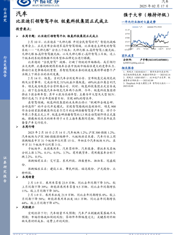 【华福证券】【20250217】比亚迪引领智驾平权 极氪科技集团正式成立-12页 行业研究