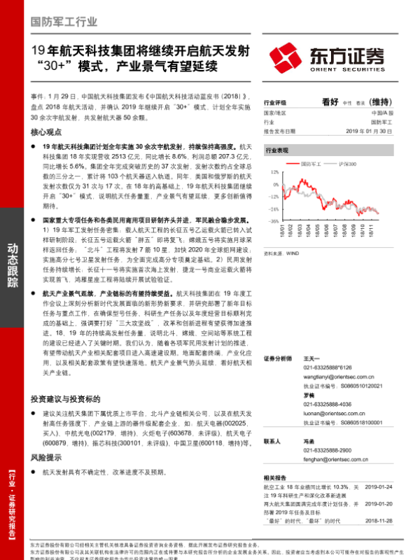 【东方证券】【20190130】国防军工行业:19年航天科技集团将继续开启航天发射“30+”模式,产业景气有望延续-3页 行业研究