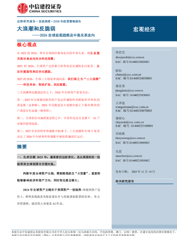 【中信建投证券】【202511】2026全球宏观趋势及中美关系走向:大浪潮和反脆弱-33页 证券期货研究报告