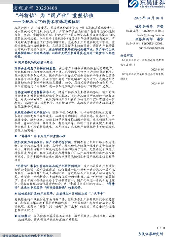 【东吴证券】【20250408】宏观点评:“科特估”为“国产化”重塑估值,关税压力下的资本市场战略协同-11页 宏观策略