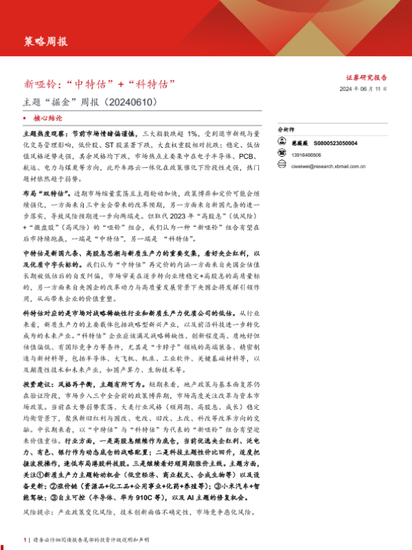 【西部证券】【20240611】主题“掘金”-新哑铃:“中特估”+“科特估”-12页 行业研究