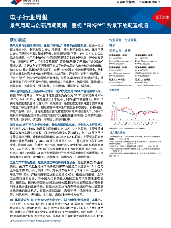 【国信证券】【20240805】20240805-国信证券-电子行业周报:景气周期与创新周期同频,重视“科特估”背景下的配置机遇-11页 行业研究