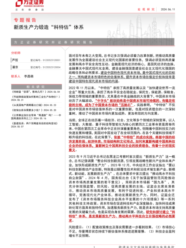 【方正证券】【20240611】专题报告:新质生产力锻造“科特估”体系-27页 行业研究