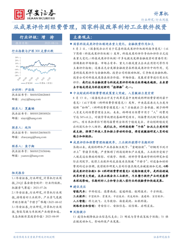 【华安证券】【20210816】从成果评价到经费管理,国家科技改革利好工业软件投资-15页 行业研究