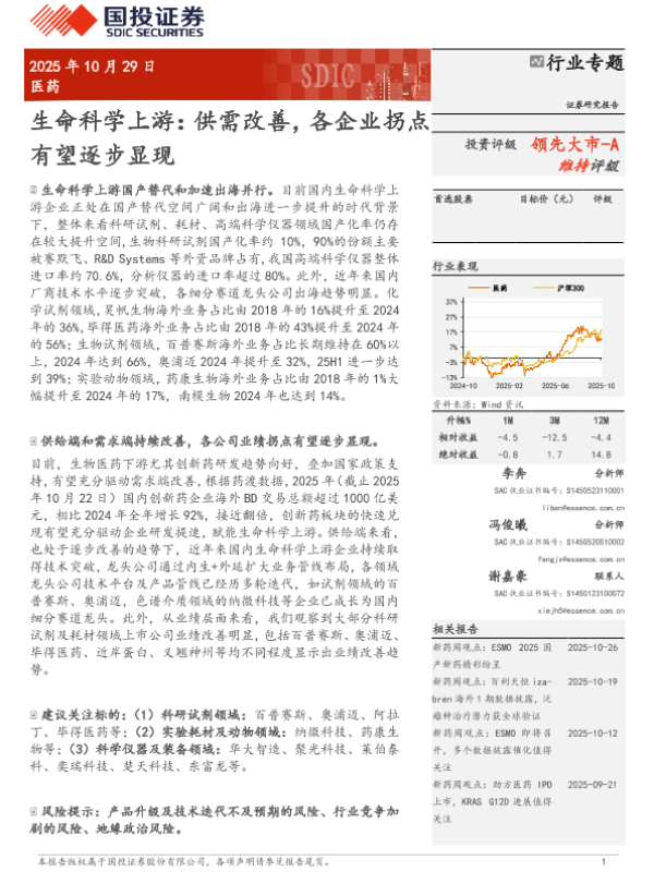 【国投证券】【202510】生命科学上游:供需改善,各企业拐点有望逐步显现-17页 证券期货研究报告