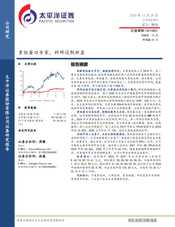 【太平洋证券】【202512】重组蛋白专家,科研试剂新星-28页 公司研究
