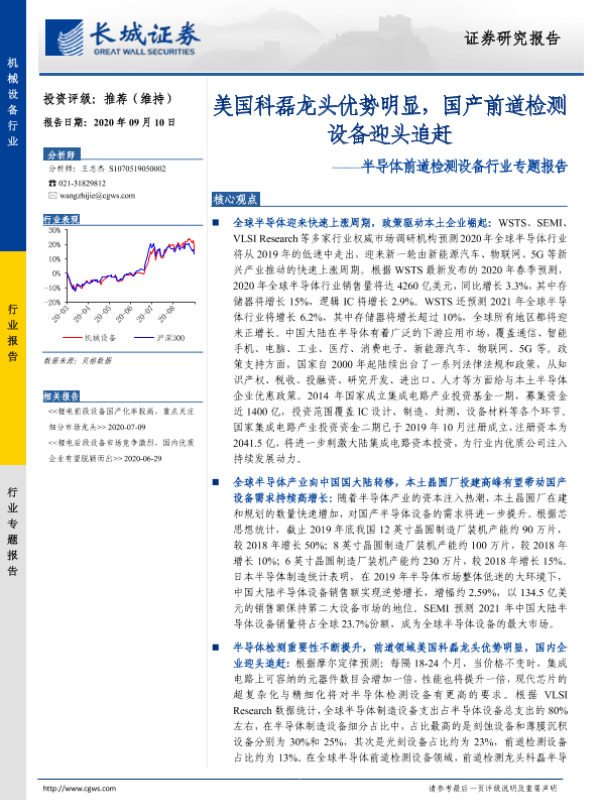 【长城证券】【20200910】20200910-长城证券-半导体前道检测设备行业专题报告:美国科磊龙头优势明显,国产前道检测设备迎头追赶-29页 行业研究