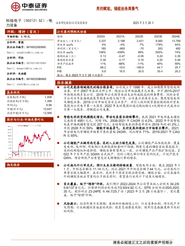 【中泰证券】【20230328】20230328-中泰证券-科陆电子-002121.SZ-美的赋能,储能业务高景气-30页 行业研究