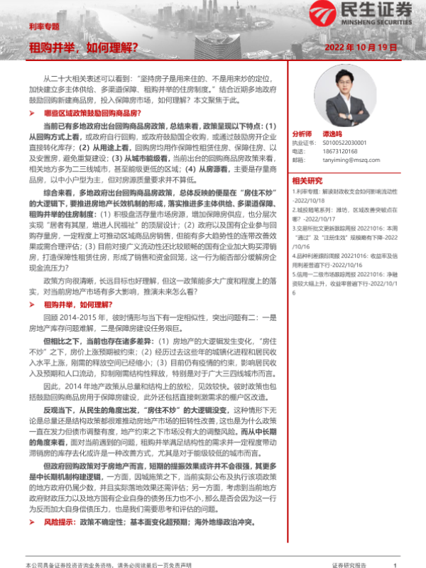 【民生证券】【20221019】利率专题:租购并举,如何理解?-15页 行业研究