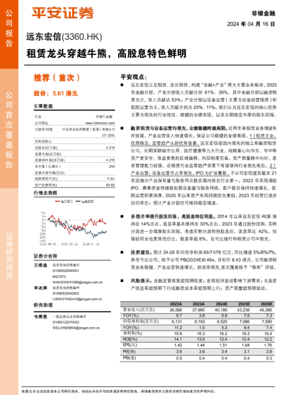 【平安证券】【20240416】远东宏信(3360.HK)租赁龙头穿越牛熊,高股息特色鲜明-24页 行业研究