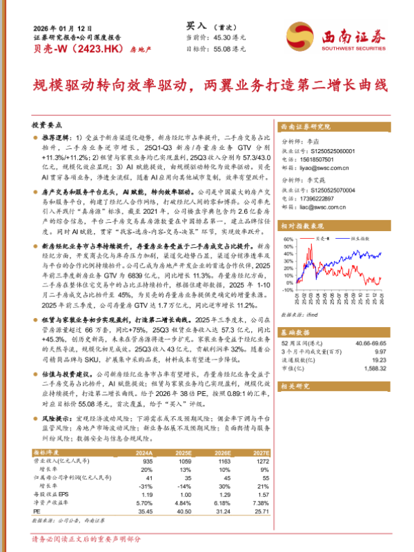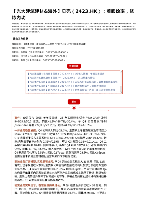 【光大证券】【202603】着眼效率,修炼内功——贝壳(2423.HK)2025年年报点评-4页 公司研究