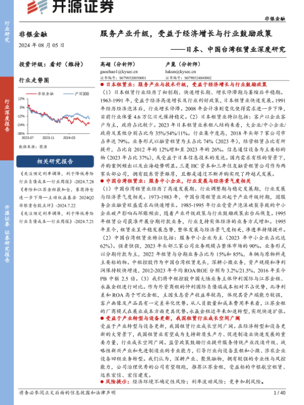 【开源证券】【20240805】非银金融行业日本、中国台湾租赁业深度研究:服务产业升级,受益于经济增长与行业鼓励政策-40页 行业研究