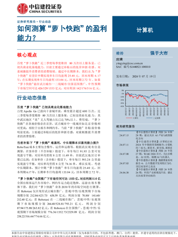 【中信建投证券】【20240719】计算机行业:如何测算“萝卜快跑”的盈利能力?-14页 行业研究