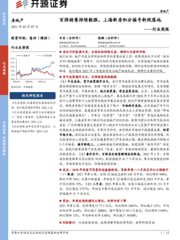 【开源证券】【20210207】房地产行业周报:百强销售持续靓眼,上海新房积分摇号新规落地-12页 行业研究