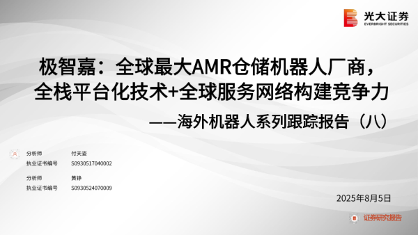 【光大证券】【20250805】极智嘉,全球最大AMR仓储机器人厂商,全栈平台化技术+全球服务网络构建竞争力-38页 证券期货研究报告
