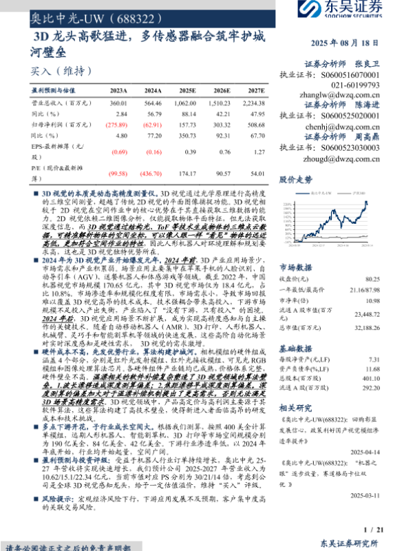 【东吴证券】【202508】奥比中光-UW(688322):3D龙头高歌猛进,多传感器融合筑牢护城河壁垒-21页 证券期货研究报告