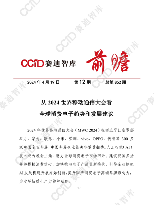 【赛迪电子所】【20240419】从2024世界移动通信大会看全球消费电子趋势和发展建议-12页 行业研究