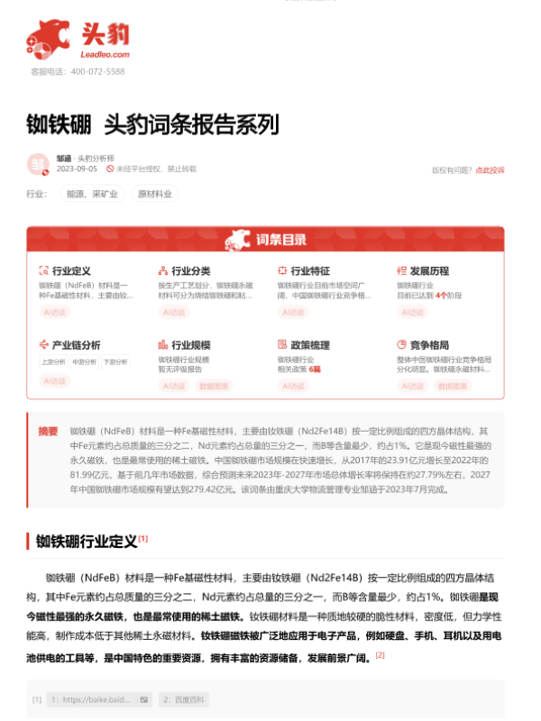 【头豹研究院】【20230915】铷铁硼 头豹词条报告系列-15页 行业研究