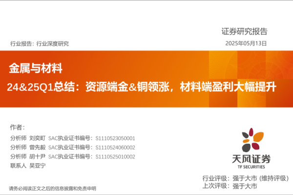 【天风证券】【20250513】金属与材料行业深度研究:24&25Q1总结,资源端金&铜领涨,材料端盈利大幅提升-43页 行业研究