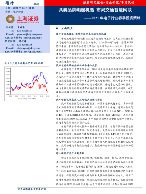 【上海证券】【20210324】2021年电子行业春季投资策略:共襄品牌崛起机遇 布局交通智能网联-22页 行业研究