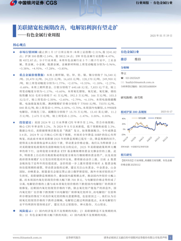 【银河证券】【20250119】20250119-中国银河-有色金属行业周报:美联储宽松预期改善,电解铝利润有望走扩-20页 行业研究