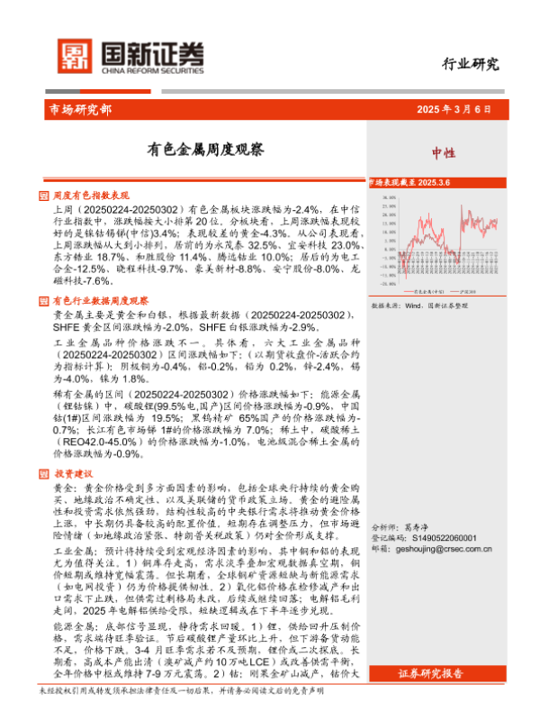 【国新证券】【20250306】20250306-国新证券股份-有色金属周度观察-12页 行业研究