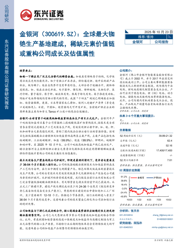 【东兴证券】【202510】金银河(300619.SZ):全球最大铷铯生产基地建成,稀缺元素价值链或重构公司成长及估值属性-33页 证券期货研究报告