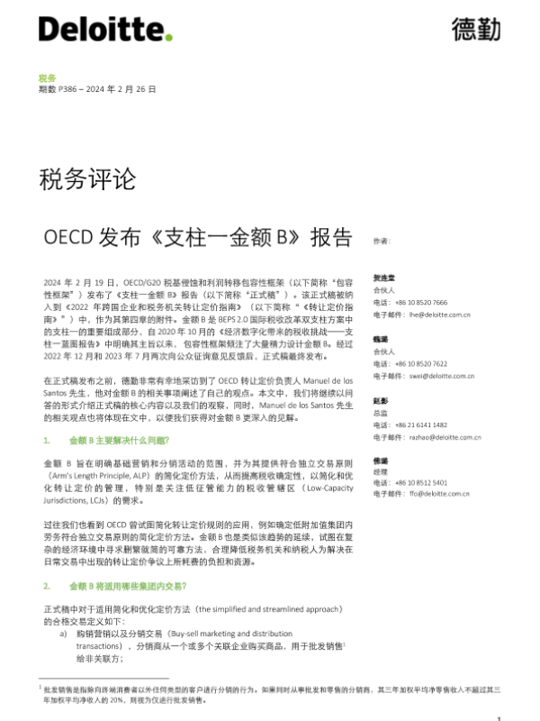 【德勤】【20240226】税务评论 - OECD发布《支柱一金额 B》报告-9页 行业研究