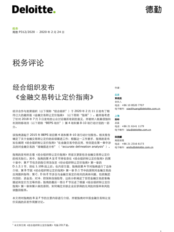 【德勤】【20200224】经合组织发布《金融交易转让定价指南》-8页 指南