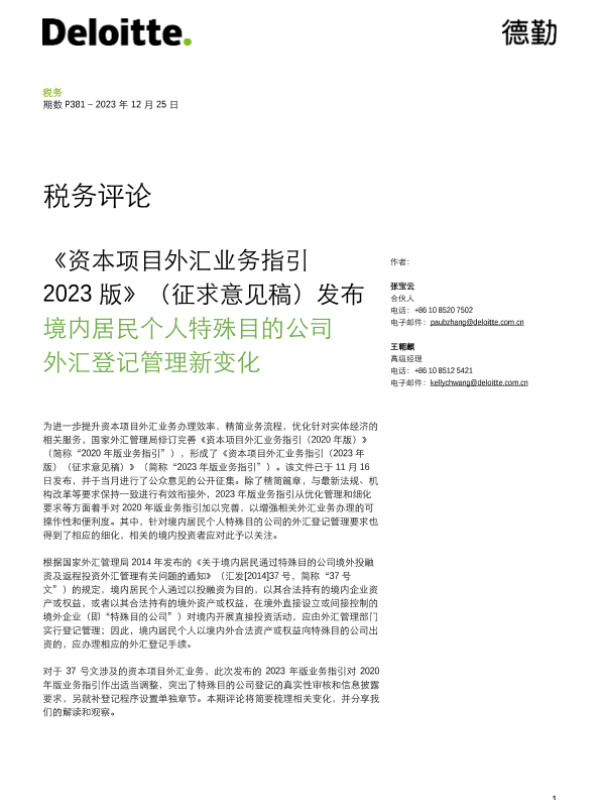 【德勤】【20231225】最新税务评论:资本项目外汇业务指引2023版-7页 政策文件