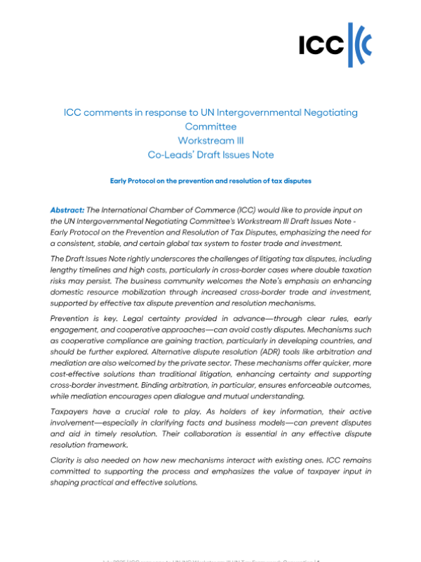 【International Chamber of Commerce】【202507】ICC response to UN INC Workstream III UN Tax Framework Convention-6页 政策文件